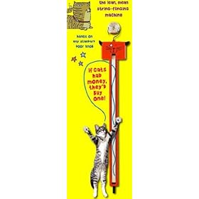 Product DescriptionFling-ama-String Cat Toy A TERRIFIC Interactive Toy The new Fling-ama-String hangs on any standard door knob. It is battery-operated and can go for hours and hours. A long string is sewn to a soft, flat elastic "conveyer belt" which constantly rotates bringing the string out and then back in. Even if the string is caught, as soon as they let go the string automatically starts to rotate again and again and again! The toy has 2 speeds to satisfy the frisky or faint feline. Kittens love it! The Fling-ama-String was a Best New Products Showcase winner at the Global Pet Expo. Takes three AA batteries (not included). This Fling-ama-String Toy Features: Hangs To Knob On The Front Of Any Standard Door (Best To Keep Door Closed When In Use) No Assembly Required - Has Two Speeds Improves Paw-Eye Coordination Entices Even The Laziest Of Cats Just Like Having A Personal Trainer For Your Cat! Requires 3 AA Batteries, Not Included) It Will Bring A Smile To Your Face Watching Your Cat Play To Its Heart's Content Measures About 29" Long More Than Just A Toy For Cats Provides Hours Of Fun For Both Pet And Owner! Your Cat Will Love You For It! Want to see the toy in action? Click Here! ^Manufacturer:~Moody Pet
